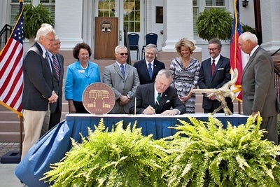 04-30 Georgia Southern University Herty Advanced Materials Development Center to Boost Economic and Business Development in GeorgiaGeorgia Southern University welcomed Georgia Governor Nathan Deal to campus to sign Georgia Senate Bill 396 into law transferring management of the Herty Advanced Materials Development Center to Georgia Southern University. The new legislation, which will align the University and Herty to create the Georgia Southern University Herty Advanced Materials Development Center, is designed to enhance economic and business development in the state of Georgia. The alignment, which will become effective July 1, 2012, will combine the strengths of both Herty and Georgia Southern University with the goal of expanding its capabilities as a global leader in traditional and advanced materials innovation. Herty’s clients, which include global corporations as well as numerous Fortune 500 companies, are currently focused in the transportation, forest and paper related products, building materials, energy and the environment and bio-products industries. “This strategic realignment will expand economic development opportunities for Georgia,” said Governor Deal. “It has the real potential to make Savannah and this larger coastal area an even more attractive market for manufacturing as well as research and development.” “As a research university with a broad base of engineering expertise, the addition of Herty’s global leadership in advanced materials innovation combined with its global reputation and network of clients will provide an outstanding opportunity for us to work together to accelerate economic development efforts in the state of Georgia,” said Georgia Southern University President Brooks Keel, Ph.D. “We are excited to be working with the team at Herty on this exciting opportunity. The center will combine the capabilities of our two outstanding organizations and represents the next step in serving the region’s growing industrial and manufacturing needs while advancing the university’s ability to partner with industries.” By transitioning the center to Georgia Southern University, and leveraging some of the existing infrastructures for industry engagement and government relations, both Georgia Southern and Herty will benefit from improved visibility, providing it with the opportunity to build additional industry partnerships by being directly tied to a major research university. In addition, Herty and the Center’s clients will benefit from access to Georgia Southern’s more than 100 science, technology, engineering and mathematics (STEM) Ph.D. faculty, allowing access to the combined research and development prowess of an advanced materials research and manufacturing center and a major research university. “Herty has been strategically focused on industries that are important to Georgia including transportation, forest products and paper, energy and environment and building materials,” said Charles Patterson, Ph.D., vice president for research and economic development at Georgia Southern University. “Our goal is to expand the center’s existing capabilities to help make this area an even more attractive market for research and development in the areas of pulp and paper, materials science, polymer science and composites, with an emerging interest in bio-derived materials and biofuels.” A recent manufacturing survey noted that fewer than 10 percent of manufactures in Georgia set innovation as a priority. Patterson says that is where the new Georgia Southern University Herty Advanced Materials Development Center comes in. ”Ultimately, the goal is to enable companies to achieve both their research and development and financial goals while working with the region and the state to create an environment that cultivates opportunity for businesses to relocate or stay within Georgia,” says Patterson. “This will mean more jobs for Georgia and we appreciate the Governor’s confidence in Georgia Southern University and in our expanding role as an economic development engine for the state.” The center, which is located near the Port of Savannah, is named for the noted chemist, businessman and academic, Charles Herty (1837-1938) who revolutionized the nation’s naval store industry through innovations in turpentine and paper making in the early 1900s. In addition, Herty devised the first system for manufacturing newsprint from southern pines giving the South a tremendously successful cash crop. Today’s announcement represents a homecoming of sorts. Herty’s first experiments on southern pines were conducted in a forest located on Georgia Southern’s campus. The University erected a plaque in 1935 noting the site. Georgia Southern University, a Carnegie Doctoral/Research University founded in 1906, offers 117 degree programs serving more than 20,000 students. Through eight colleges, the University offers bachelor’s, master’s and doctoral degree programs built on more than a century of academic achievement. The University is one of the Top 10 most popular universities in the nation according to U.S. News & World Report, and is a top choice of Georgia’s HOPE scholars. Georgia Southern is recognized for its student-centered approach to education. Visit: www.georgiasouthern.edu.