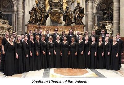 Georgia Southern University’s choral groups Southern Chorale and Fermata the Blue returned Tuesday from the International Anton Bruckner Choral Competition and Festival in Linz, Austria. The Chorale received gold diplomas in the compulsory and sacred divisions, Fermata the Blue was honored with one gold diploma and both groups earned second-place finishes.