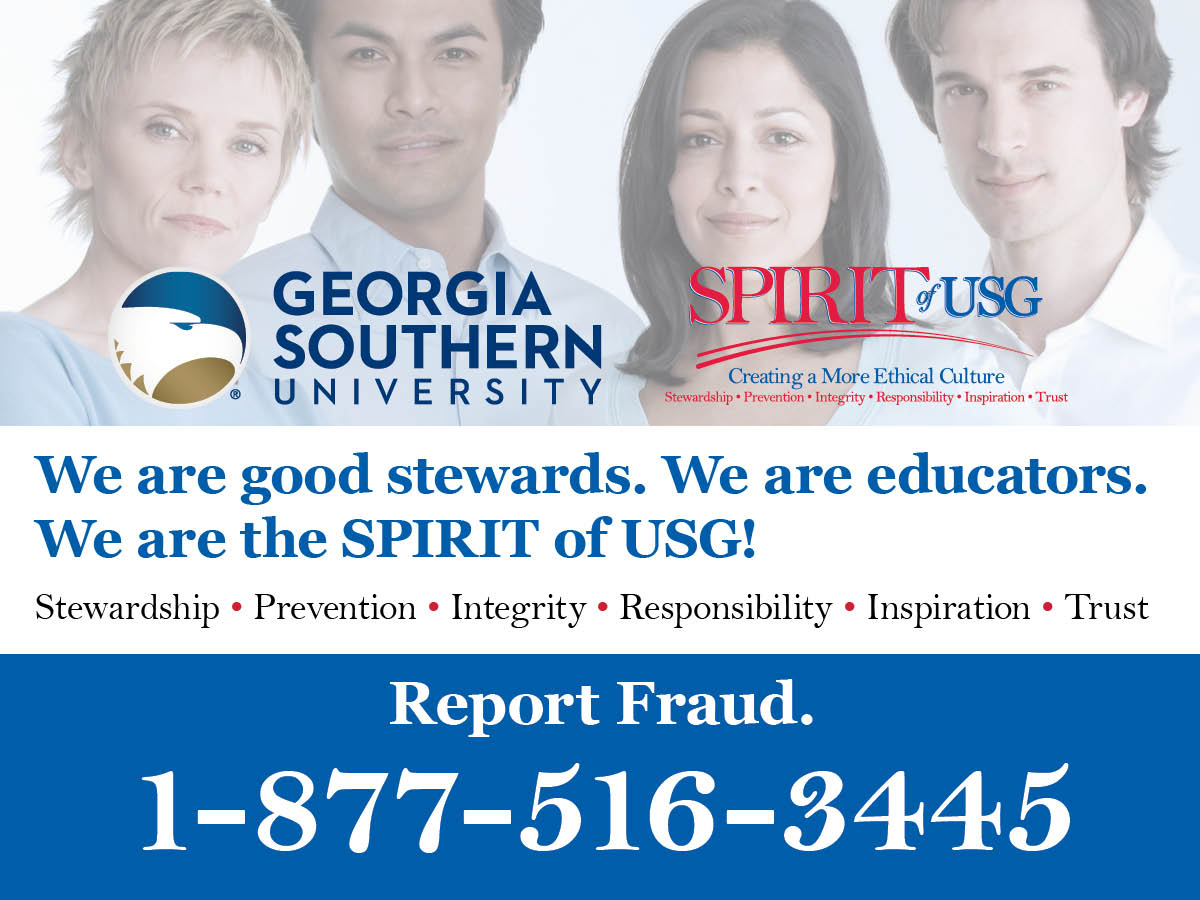 For more information on Fraud Awareness Week, or to report a fraud or ethical violation, visit Georgiasouthern.edu/reportfraud or call 1-877-516-3445. Members of the public are also encouraged to report.