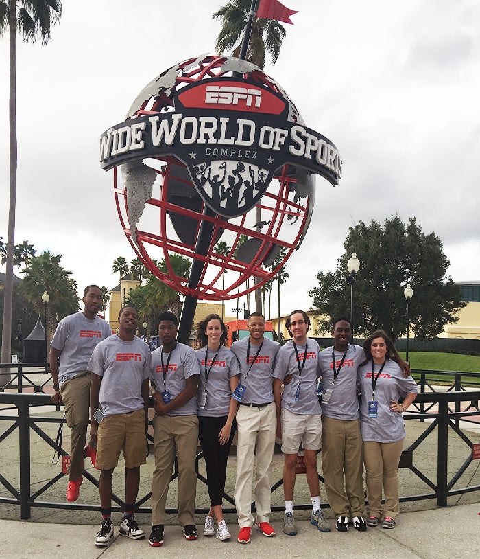 Eight Georgia Southern Sport Management students along with Assistant Professor of Sport Management, Christina Gipson, Ph.D., spent the University’s Thanksgiving break volunteering at the AdvoCare Invitational, Nov. 26, 27 and 29, at ESPN Wide World of Sports Complex near Orlando, Florida. Each year, ESPN hosts a weekend long affair at the Walt Disney World Resort where participating college basketball teams practice, play and enjoy the Disney World Resort Theme Parks. During the four day event, the students obtained hands-on experience working in the ticket office, working behind the scenes, and shadowing media broadcasting. Students also had the opportunity to network with sport management professionals, Lou Holtz and Dick Vitale, during a two hour discussion panel.