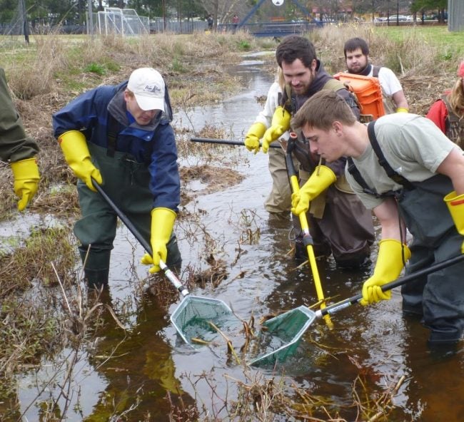 Squirrels and robins are a common sight on almost any college campus. But is the park-like landscape of a campus actually a good habitat for wildlife? How many other species live in the fields, forests and waters of a university campus? Faculty and students at Georgia Southern University have just completed a two-year study to answer these questions. The study, organized by biology professors Michelle Cawthorn, Ph.D., Ray Chandler, Ph.D., Lance McBrayer, Ph.D., and Jamie Roberts, Ph.D., was funded by the University’s Center for Sustainability (CfS). With the help of dozens of students, the scientists observed, live-trapped, netted, audio-recorded or photographed 207 species of vertebrates (fish, amphibians, reptiles, birds and mammals) on the Georgia Southern University campus. This impressive diversity includes 19 species of fish, 19 amphibians, 24 reptiles, 126 birds and 19 mammals.“These numbers are not just an answer to a trivia question for biology class,” explained Chandler. “The number of species our campus supports is an indicator of the health of our campus environment and a measure of how sustainably we are managing that environment.” Because the study mapped the location of every animal found, future construction and other development can be done in a way that minimizes impacts on biodiversity.There are educational benefits as well because a biodiverse campus is a living laboratory that students and faculty can use just by walking outside their building.“The ultimate goal is to manage our campus in a way that in 50 or 100 years it will still support these 207 vertebrate species, or hopefully more,” said McBrayer. “We know that some species have disappeared from campus since the 1970s. We don’t want to make that mistake again.” The results of the survey are available to anyone through the iNaturalist website or smartphone application. The project, titled “Georgia Southern Biological Survey,” includes a list of all the species observed, a map of where individuals were seen, and documentary photos for most of the species. An important feature of the application is that anyone on campus can add to the data. “If you encounter a vertebrate on campus, you can snap a photo with your smartphone, go to the application and upload your sighting,” said Rebecca Scott, the biology graduate student who created the site for the project. “This type of citizen science is a great way to engage students and the community in gathering important biological data,” added Roberts.The Georgia Southern Biological Survey is among the most comprehensive of any university in the country, and it is unique in the state. “A logical next step is to expand the survey from campus to the city of Statesboro to help them with their environmental planning and sustainability,” said Cawthorn. “We would like our campus and community to be leaders in the conservation of biodiversity.”To read the full study, visit https://www.inaturalist.org/projects/georgia-southern-biological-survey. Georgia Southern University, a public Carnegie Doctoral/Research University founded in 1906, offers 118 degree programs serving 20,673 students. Through eight colleges, the University offers bachelor’s, master’s and doctoral degree programs built on more than a century of academic achievement. Georgia Southern is recognized for its student-centered and hands-on approach to education. Visit GeorgiaSouthern.edu.