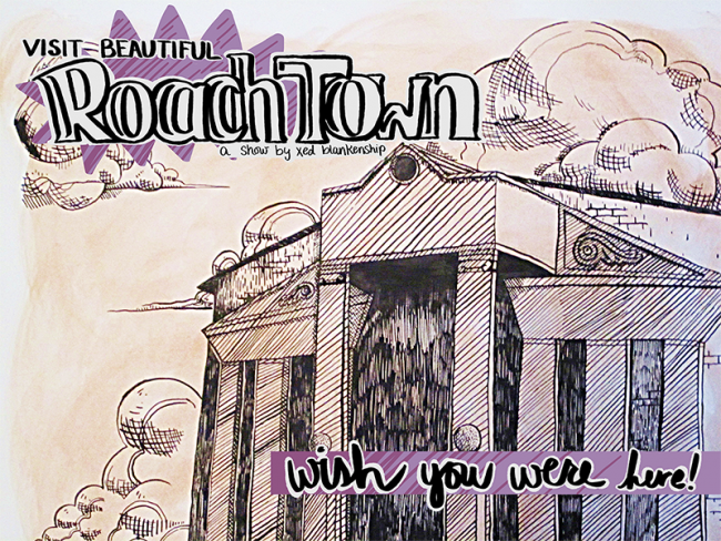 Visit Beautiful Roach Town by alumna Kathleen “Xed” Blankenship (’17) is a multimedia installation depicting an imaginary city of cartoon roaches. The exhibition features miniature 3-D sculptures as well as watercolor paintings and illustrations.