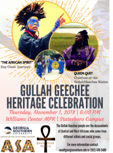 Georgia Southern’s Office of Multicultural Affairs, Know Your Worth and the African Student Association will host a Gullah Geechee Heritage Celebration on Thursday, Nov. 1, on the Statesboro Campus in the Williams Center Multipurpose Room. The event will begin at 6 p.m. and will be followed by a brief reception. The Gullah Geechee people are descendants of Central and West Africans who came from different ethnic and social groups. They were enslaved together on the isolated sea and barrier islands that span what is now designated as the Gullah Geechee Cultural Heritage Corridor — a stretch of the U.S. coastline. It extends from Pender County, North Carolina, to St. John’s County, Florida, for 30 miles inland. The result of Gullah Geechee people began as an intense interaction among Africans from different language groups in settings where enslaved Africans and their descendants formed the majority. Over time, they developed the Creole Gullah Geechee language as a means of communicating with each other, and they were also able to preserve many African practices in their language, arts, crafts and cuisine. The celebration on Nov. 1 will feature a West African inspired dance, historical presentations, and demonstrations by The African Spirit of Day Clean Journeys, Queen Quet and the Chieftess of the Gullah Geechee Nation. For more information contact Maurice Nelson in the Office of Multicultural Affairs at oma@georgiasouthern.edu or 912-478-5409. Georgia Southern University, a public Carnegie Doctoral/Research institution founded in 1906, offers 141 degree programs serving more than 27,000 students through nine colleges on three campuses in Statesboro, Savannah, Hinesville and online instruction. A leader in higher education in southeast Georgia, the University provides a diverse student population with expert faculty, world-class scholarship and hands-on learning opportunities. Georgia Southern creates lifelong learners who serve as responsible scholars, leaders and stewards in their communities. Visit GeorgiaSouthern.edu.