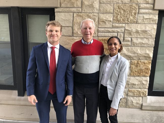 Cole Sammons, Jim Randall, DBA, and Mya Carter represent Georgia Southern University at the University of Toledo Invitational Sales Competition.