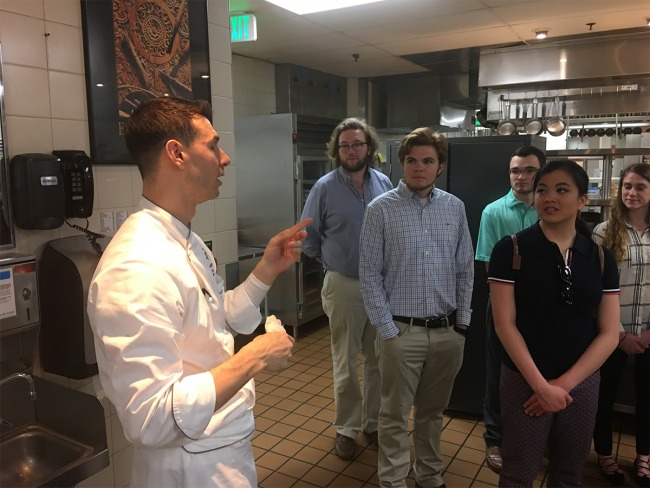 Chef de Cuisine of fine dining outlet at The Cloister at Sea Island talks with Georgia Southern students.