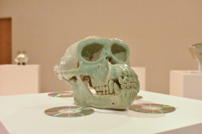 Davis is a sculptor whose series consists of primate skulls from the hominid family. Her works are displayed in the three-dimensional space so the viewer can see each skull in its entirety and appreciate the similarities and differences between each of them.