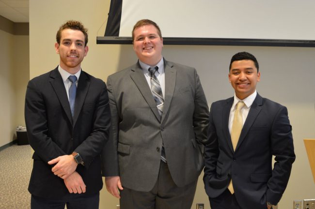 Steve Lopez, right, winner of the Parker Regional Sales Competition, stands with the other top competitors, Joe Armenta, center, from Georgia Southern and Luke Eyrich from Augusta University.