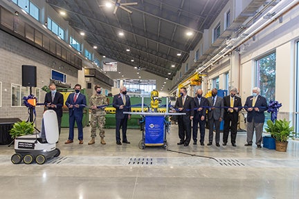 A ribbon-cutting ceremony held Friday featured University President Kyle Marrero, Regent C. Everett Kennedy III, Georgia Southern student and ROTC cadet James Miles, Georgia House Majority Leader Jon Burns, and Georgia Power President Chris Womack.