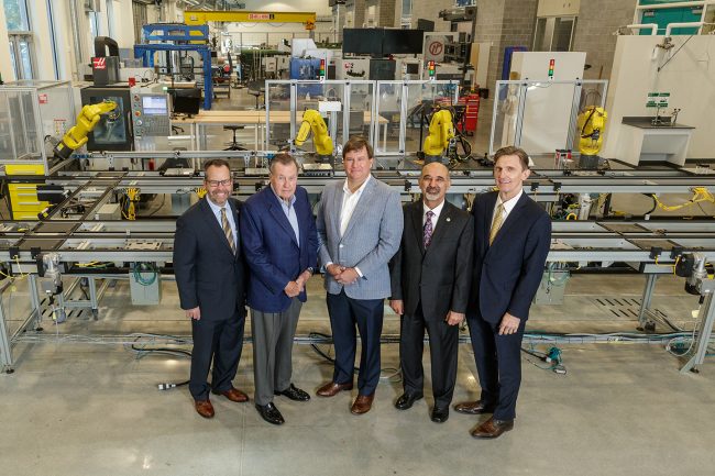 Georgia Southern University President Kyle Marrero; Billy Crider Jr.; Bill Crider III; Allen E. Paulson College of Engineering and Computing Dean Mohammad Davoud; and Director of Industrial Relations, Assessment and Accreditation Reinhold Gerbsch.