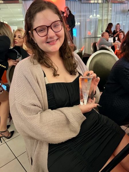 When planning for the gala in May, she invited her donor to attend with her. Little did she know that not only was he already going to attend, but he was also going to be called to the stage to present an award. He presented her with the Steven Bochco Award.