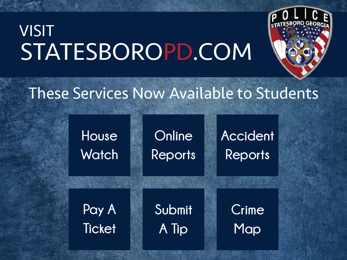 Whether you are in the City of Statesboro or traveling out of town, the Statesboro Police Department and Georgia Southern’s Office of Public Safety are working to ensure the safety of the University community through various resources, including house watching and property registration, available to students, faculty and staff.