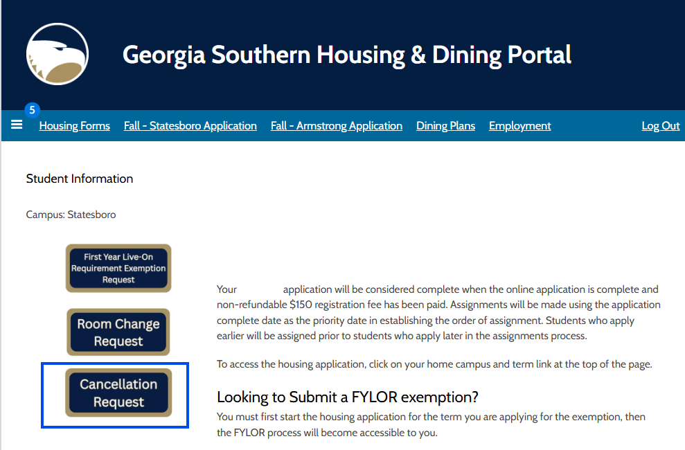 Housing Cancellation Request