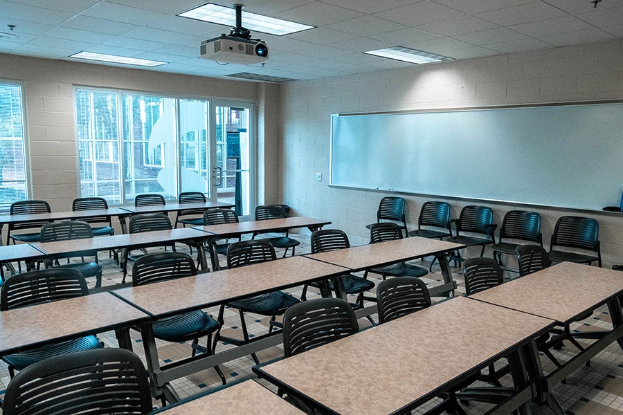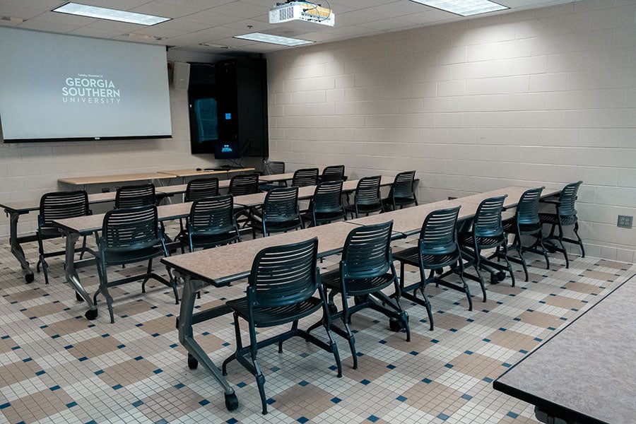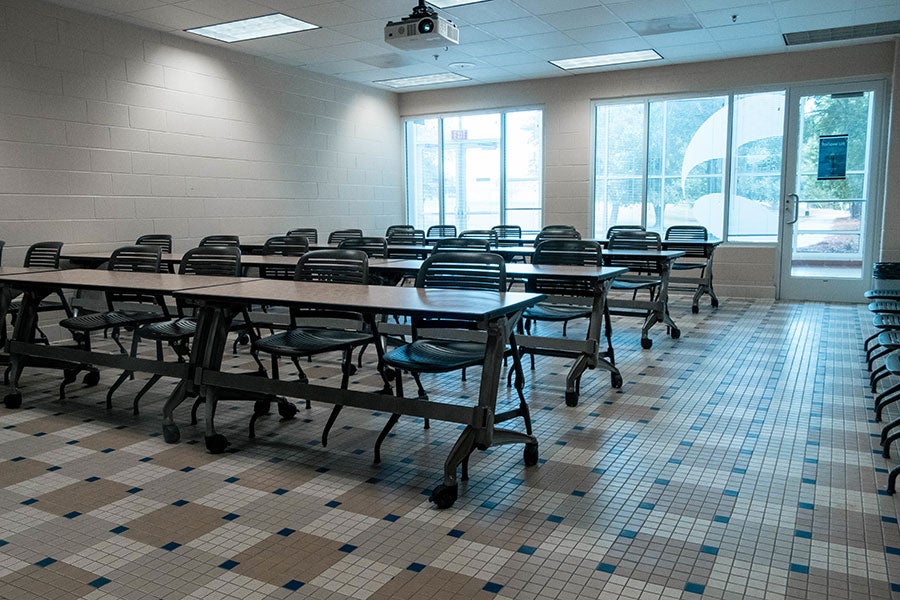 The RAC’s seminar room can fit either 56 chairs at tables or 100 chairs without tables. This large, second-story meeting space features a computer with two projectors, an overhead projector for documents, a laptop connection, a lapel/wireless microphone, a dry erase board and a sink.